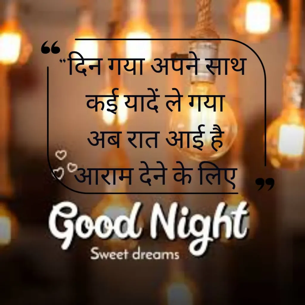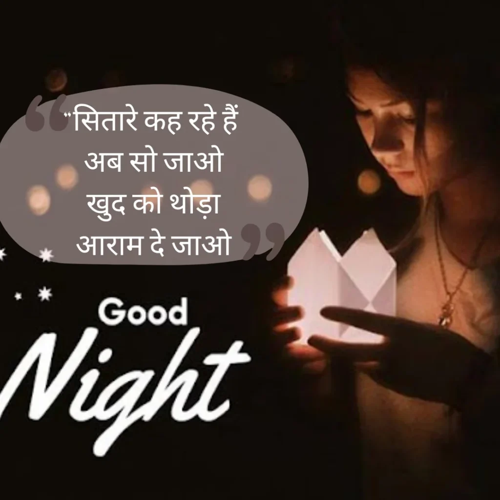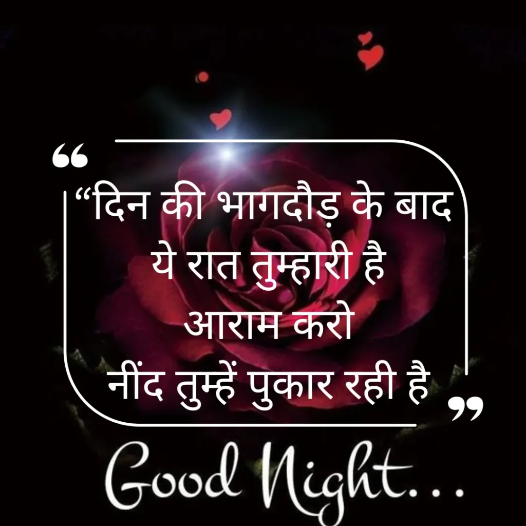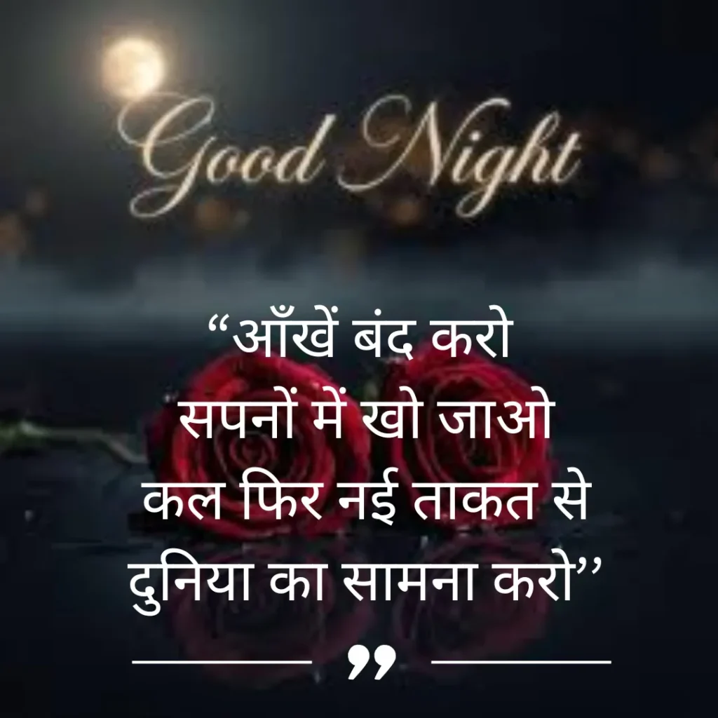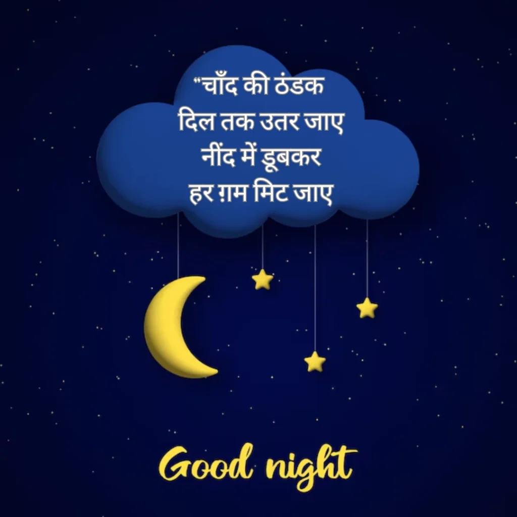 Welcome to shayariimg, जहाँ हर Best Good Night Shayari in Hindi दिल से निकली हुई और भावनाओं से भरी होती है। यहाँ आपको मिलेंगी ऐसी खूबसूरत पंक्तियाँ जो किसी अपने के चेहरे पर मुस्कान ला दें, दिल को हल्का कर दें और आपकी रात को मीठे सपनों से सजा दें।